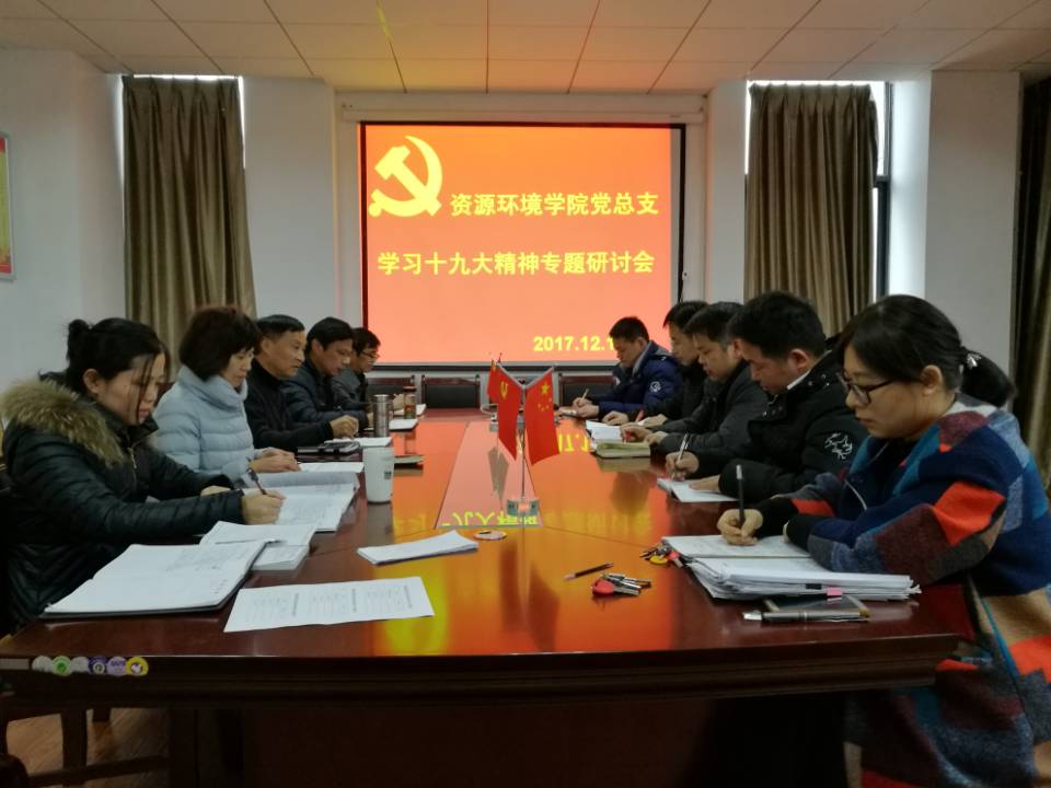 资源环境学院以党的政治建设为统领,以坚定理想信念为根基,全面推进党的政治建设、思想建设、组织建设、作风建设和纪律建设,把制度建设贯穿其中,不断提高党建工作水平。认真学习党的基本理论,努力掌握马克思主义立场、观点、方法。认真学习党的十八大和十八届三中、四中、五中、六中全会精神,学习贯彻党的十九大精神,深入学习习近平新时代中国特色社会主义思想和习近平总书记系列重要讲话精神,学习《中国共产党章程》、《关于新形势下党内政治生活的若干准则》和《中国共产党党内监督条例》等重要文件精神。认真学习落实全国、全省高校思想政治工作会议精神,强化意识形态阵地管理,严明课堂教学管理和教学秩序,坚持正确办学方向,提高用马克思主义的立场、观点、方法解决问题能力,确保学习取得实实在在的效果。