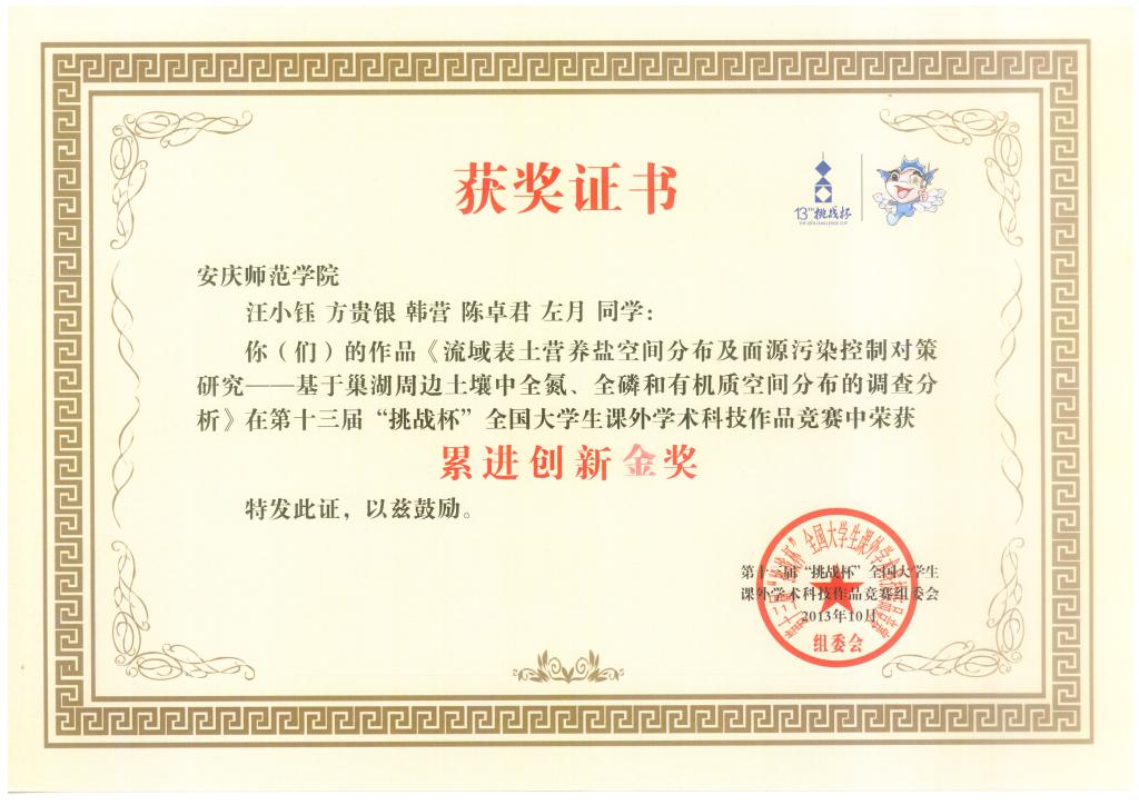 培养什么人,如何培养人,是资源环境学院一直在想也一直在做的事情。近年来,学院认真贯彻落实党的教育方针,以人才培养为根本,以师资队伍建设为抓手,不断优化教学条件,深化教学改革,从不同学科和不同专业的特点出发,结合学生自身情况,分门别类地确定学生培养目标,优化教学模式,着力提升学生的核心素养和实践能力。学院建立校外教学实习、实训基地10余个,校内实验设备总值达1000余万元,创新创业活动蓬勃开展,培养了一批又一批学习成绩优异、实践能力突出的毕业生。校第五次党代会以来,学生获得国家级和省级各类竞赛奖励30余项,旅游专业学生在安徽省茶艺比赛中获得一等奖1项,在安徽省“未来之星”导游比赛和GIS竞赛中,多次获得二等奖、三等奖等好成绩。环境科学和环境工程专业在全国“挑战杯”大赛中荣获累进创新金奖1项、一等奖1项,获全国节能减排大赛中获一等奖1项。地理专业学生获安徽省教学技能竞赛特等奖1项、一等奖4项。