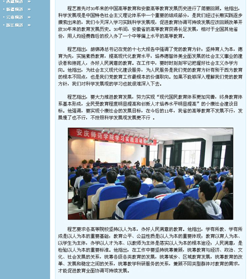 3月25日,新华网在首页安徽要闻位置报道了程艺厅长来永利官网作首场报告的新闻,这是3月20日新华网报道永利官网召开深入学习实践科学发展观活动动员大会后,永利官网学习实践活动再一次被新华网报道。