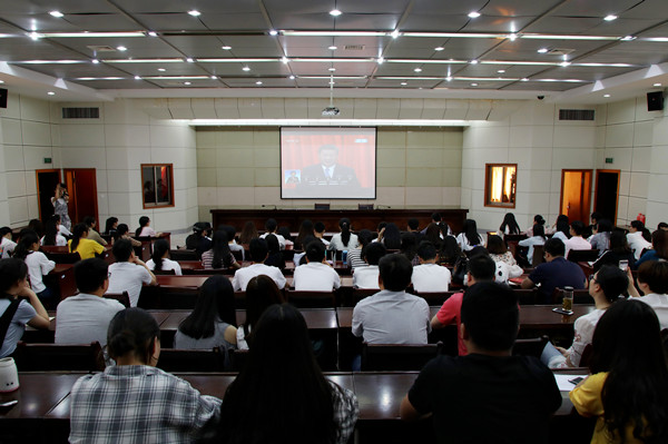 5月4日上午,学校党委常委班子,校党委部门负责同志,马克思主义学院部分师生,部分辅导员、青马工程班学员、学生骨干代表,集中收看了马克思诞辰200周年纪念大会直播。