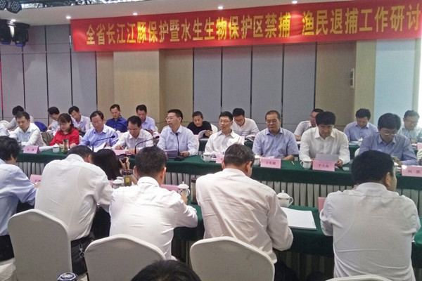 韩兵主持会议,他介绍了《农业部关于推动落实长江流域水生生物保护区全面禁捕工作的意见》精神,同时介绍了安徽省农委推进水生生物保护区全面禁捕工作。