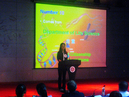 最终来自生命科学系的06生物技术班庄重同学以87.250的高分夺得大赛冠军。化学与化工学院的石磊,人文与社会学院的汪旋分别获得比赛的第二名和第三名。大赛在进行紧张有序、激烈而愉快的气氛中圆满落幕。(项小燕)