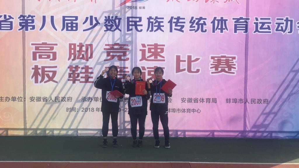 11月19日至23日,由安徽省人民政府主办的我省规模最大、规格最高的少数民族体育盛会--安徽省第八届少数民族传统体育运动会在蚌埠市体育中心隆重举行,77779193永利运动健儿在许贵泉、胡哲纯两位教练的带领下,代表安庆市参加了板鞋竞速和高脚竞速两个项目的比赛。经过激烈角逐,77779193永利健儿战果丰硕,最终在高脚竞速男子女子100米、200米、2乘200米、4乘100米混合接力等项目中获得一等奖三个;二等奖五个,三等奖二个。在板鞋竞速60米、100米、2乘100米等项目中获得二等奖二个、三等奖一个。