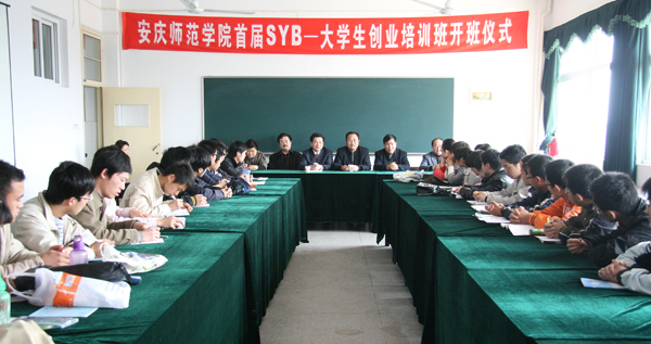 为了进一步做好毕业生就业工作,提高毕业生创业能力,以创业带动就业,3月26日上午,由安庆市就业局与永利官网联合举办的“安庆师范学院首期SYB--大学生创业培训班”在稼先楼北423教室举行开班仪式。安庆市劳动就业局党总支书记李伟国、培训中心主任杨扣友、副主任张卓、永利官网招生就业处处长陈世庆、学生处处长、团委书记戴卫义、物理与电气工程学院全体党政领导、授课教师、班主任以及首期培训班的40名学员参加了开班仪式。