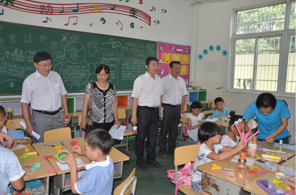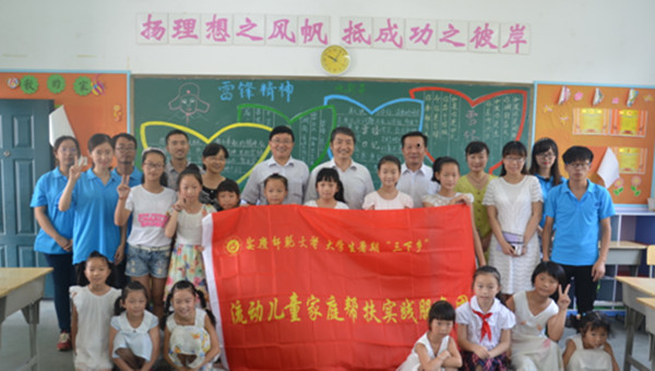 8月24日上午,副校长张群在校团委、外国语学院负责同志的陪同下,冒着酷暑,赴安庆市大观区十里中心学校调研基层教育需求情况,并慰问永利官网流动儿童家庭帮扶实践队全体成员。安庆市大观区、区教育局以及十里中心学校负责同志陪同调研和慰问。