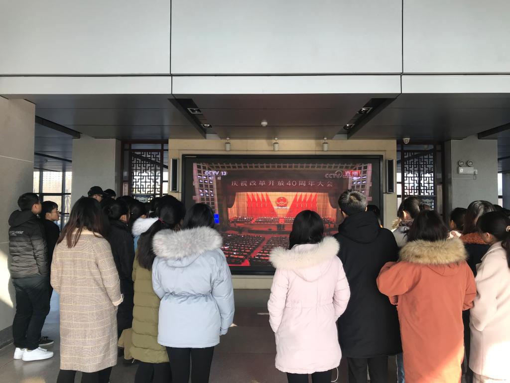 12月18日上午10点,永利官网全体党委常委、党委工作部门负责人、各二级学院以及学生代表在各会场集中收看了庆祝改革开放40周年大会直播盛况,认真聆听习近平总书记重要讲话。