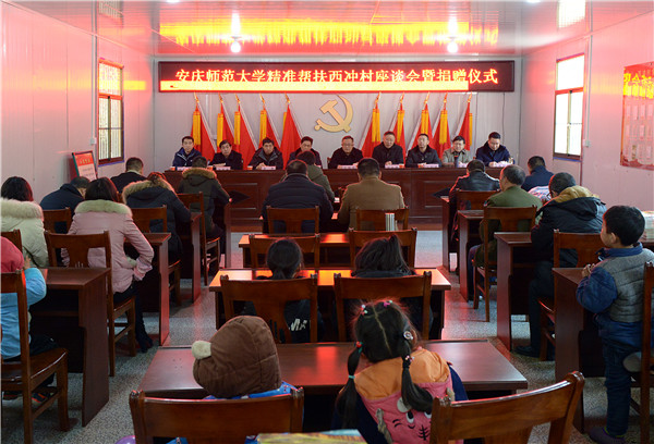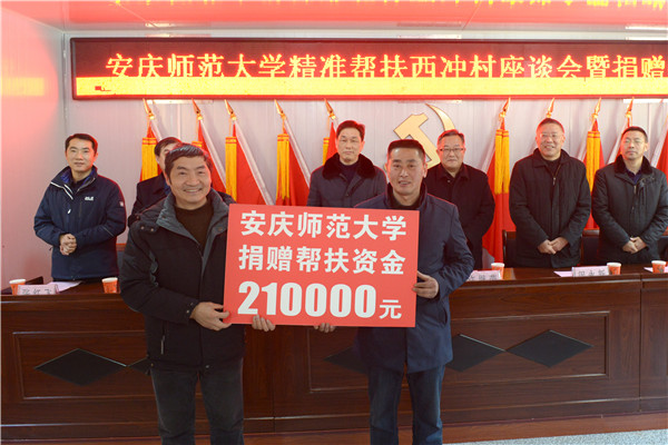 闵永新代表学校讲话。他指出,2018年,在习近平新时代中国特色社会主义思想和党的十九大精神指引下,西冲村脱贫攻坚战取得阶段性成果,顺利完成了脱贫出列任务。77779193永利高度重视扶贫工作,全体师生情系西冲,各机关部门和学院综合发力,在教育扶贫、产业扶贫、人才智力扶贫等方面做出了积极努力,为西冲村脱贫工作贡献了力量。2019年是脱贫攻坚的决战年,打好2019年脱贫攻坚战至关重要。他要求,各部门要把扶贫工作作为重要的政治任务来抓,做到政治站位再提高,苦干实干、万众一心夺取脱贫攻坚全胜;要坚持以教育扶贫为抓手,充分发挥学校的人才、智力优势,与西冲村做好精准扶贫各项工作对接,打造教育帮扶特色,以高度政治担当和深厚为民情怀,全力帮助西冲村实现稳定脱贫。闵永新充分肯定了学校驻村扶贫工作队在西冲村的挂职帮扶工作,他希望扶贫工作队能对照各项指标要求,动员全校各方面力量,努力打赢西冲村脱贫攻坚战,助力太湖县实现顺利摘帽。