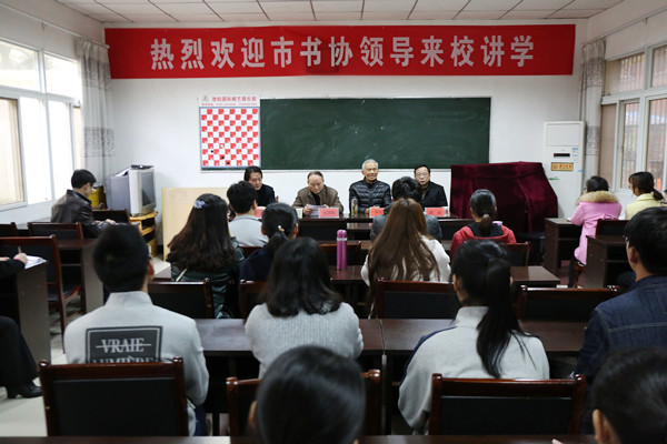 活动开始前,校关工委主任朱建华同王泽辉一行进行了座谈,他向市书协领导介绍了永利官网关工委和相关部门在打造“墨香校园”工程中的一系列举措和取得的成绩,双方就进一步加强交流和合作,培养更多优秀书法人才进行了探讨。