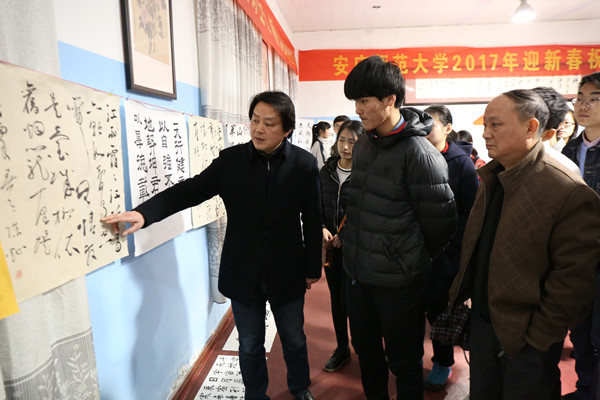 应校关工委和离退休人员工作处邀请,3月22日下午,安庆市书协主席王泽辉,副主席兼秘书长朱仁安,副主席郭迪一行三人来永利官网讲学,并为永利官网大学生书法爱好者点评书法作品。