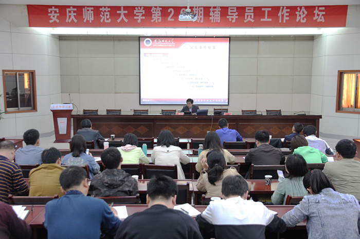 为深入推进永利官网学工队伍“强基”“培优”工程,着力提升学生队伍的政策水平和业务能力,夯实学生工作基础,4月18日下午,学校举办了第26期辅导员工作论坛。论坛邀请了安徽师范大学资产与实验室管理处处长台启权做专题报告。学校相关职能部门负责人、各学院分管学生工作副书记和全体专兼职辅导员参加了论坛。