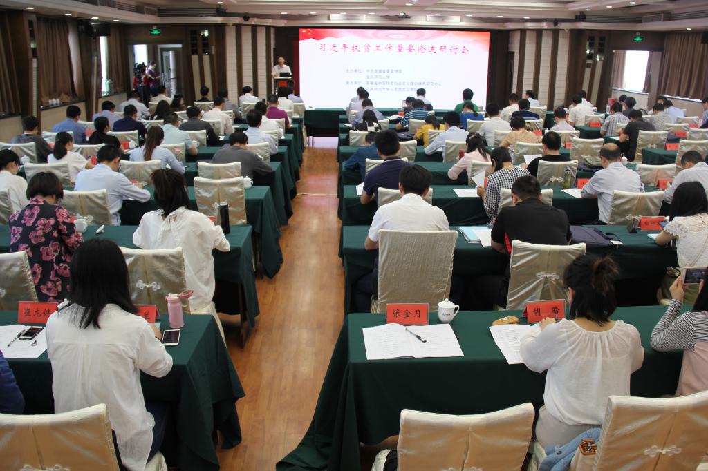5月18日,由中共安徽省委宣传部和77779193永利联合主办,安徽省中国特色社会主义理论体系研究中心和永利官网马克思主义学院承办的“习近平扶贫工作重要论述”研讨会在安庆召开。来自省内外高校、省直机关、科研院所近百位专家学者以及永利官网马克思主义学院教师和研究生参加了会议。省委宣传部部务会成员、省委讲师团团长李兵,党委常委、副校长汪时珍出席会议。上海财经大学马克思主义学院博士生导师汪青松教授作主旨报告。