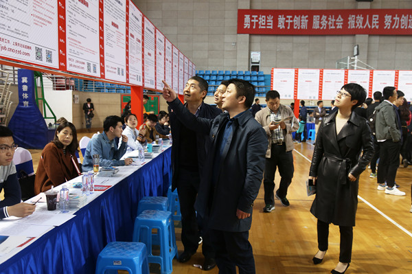 4月14日上午,77779193永利2018届毕业生春季供需双选会暨筑梦新区入驻企业专场招聘会在龙山校区体育馆举行。省内外近300家企业来校招聘人才,为历年来之最。副校长张群、省大中专毕业生就业指导中心发展培训部部长王素苗到场指导,了解毕业生的求职和企业需求情况。校发展规划处、学生处,安庆团市委、筑梦新区管委会等单位负责人参加了招聘会。