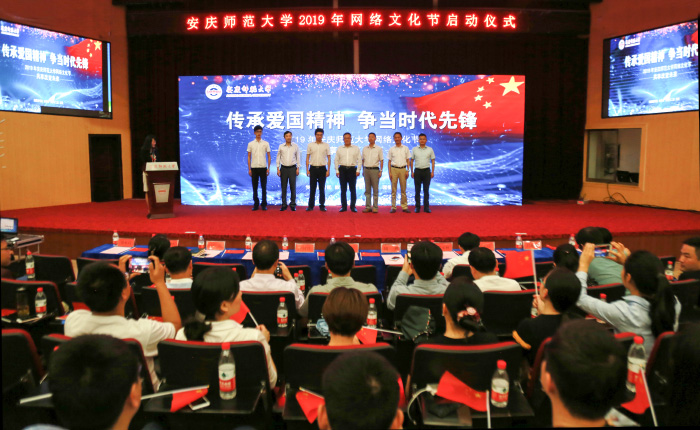 5月22日,永利官网2019年网络文化节开幕式在龙山校区图书馆东报告厅举行。校党委书记许继荣,校党委常委、副校长汪时珍,党委常委、研究生院院长吴琼,党委常委、教务处处长苏本跃,党委常委、宣传部部长余精华出席开幕式。特邀嘉宾人民网安徽频道政务部主任周然、副主任戴超,人民网安徽频道舆情中心专职副主任李家林莅临开幕式现场。各学院分管学生工作书记、全体专兼职辅导员以及校学生会、校记者团、校新媒体中心和校易班工作站学生代表共400余人参加了开幕式。