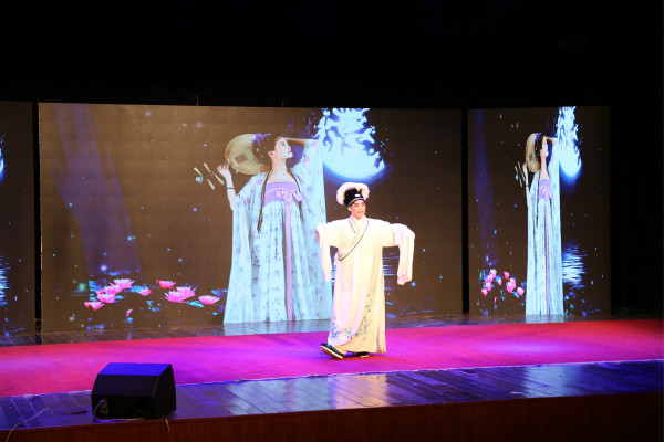 “夫妻二个城门进,抬起头来看花灯……”表演者一开嗓,轻快的旋律和腔调就把观众带到了热闹的花灯会现场。安徽省黄梅戏非物质文化传承人、国家一级演员郭霄珍和其搭档国家一级演员潘文格合作表演了传统折子戏《闹花灯》。欣喜扬眉、因怒而嗔……郭霄珍用细微的肢体动作充分表达了人物内心的丰富情感。“我之前也看过《闹花灯》,但每次看都有不一样的收获,郭老师的艺术创造力很让我敬佩。”音乐学专业2017(3)班的汪珺文说,并表示在观看学习过程中,自身的专业素养也得到了提升。
