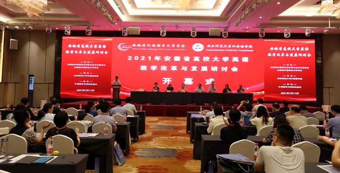 7月17日,2021年安徽省高校大学英语教学改革与发展研讨会在永利官网召开。来自全省40多所本科高校的外国语学院院长、大学英语教学部(室)主任及骨干教师100余人参加了本次研讨会。党委常委、副校长吴琼,安徽省外国语言文学类专业合作委员会主任、安徽省外国语言文学学会会长朱跃出席开幕式并分别致辞。