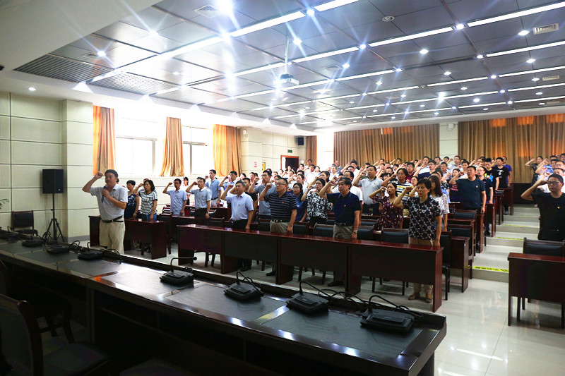 为庆祝中国共产党成立98周年,深入学习贯彻习近平新时代中国特色社会主义思想和党的十九大精神,推动“两学一做”学习教育制度化常态化,7月1日上午,机关党委组织全体党员开展了“重温入党誓词,牢记初心使命”宣誓活动。校领导许继荣、刘友忠、胡腊香,机关各支部党员120多人参加了宣誓仪式。