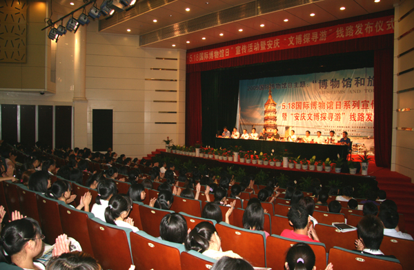 5月18日,由安庆市文广局、旅游局和永利官网人文与社会学院联合主办的5•18国际博物馆日系列活动开幕式暨“安庆文博探寻游”线路发布仪式在龙山校区音乐厅隆重举行。安庆市人民政府副市长王强和永利官网党委委员、副院长时新中出席仪式并发表重要讲话。人文与社会学院党总支书记疏玉友、副院长李义中、安庆市文广局局长苏斌、旅游局局长罗成圣等和永利官网人文与社会学院人文教育专业、历史学专业、旅游管理等专业学生300余人参加了仪式。