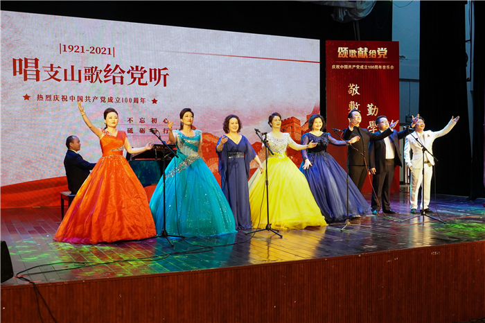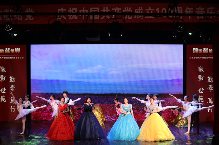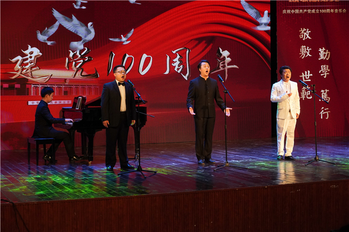 音乐会由音乐学院声乐教研室8位教师深情演绎。《忆秦娥 娄山关》《黄河颂》《没有共产党就没有新中国》《毛主席的话儿记心上》《共圆中国梦》《不忘初心》等12首经典红歌,讲述了从万里长征、抗日战争到社会主义建设、改革开放再到全面建成小康社会过程中中国共产党在中国大地上描绘的民族振兴磅礴画卷的历史征程,说、唱、讲结合,音史兼备,是一堂生动的音乐党史课。