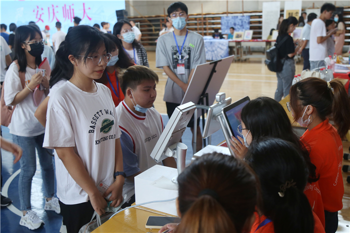 除了校内迎新点,永利官网在安庆火车站和客运汽车总站设新生接待站,志愿者们在学校和车站间奔波,随时为新生提供周到服务。