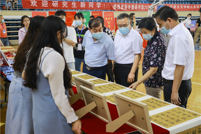 9月15日一大早,校党政领导许继荣、闵永新、吴照明、刘友忠、胡腊香、吴琼、余精华等一行就来到新生入校核验区、测温区、各院系新生接待点、学生公寓等处,检查迎新各项工作,慰问迎新工作人员和志愿者,详细了解迎新工作安排和新生报到情况。校党政领导要求全体工作人员一定要做好疫情防控常态化工作,确保迎新工作安全顺利推进。他们和新生进行亲切交谈,勉励他们尽快适应新的学习环境和生活节奏。