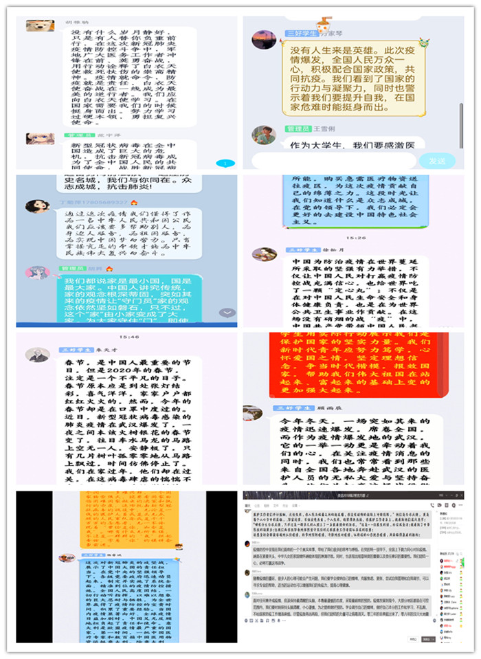 围绕五位专家的精彩讲课,77779193永利的教师和辅导员们也通过微信群、QQ群、学习通、雨课堂等平台展开了热烈的讨论。大家一致认为,这场没有硝烟的战争为教育工作提供了许多鲜活感人的事例与素材,教师应该守好自己的“责任田”,除了开展疫情防护知识教育外,还要积极引导学生传承和弘扬爱国主义精神,把稳思想之舵,为学生的成长成人成才保驾护航。