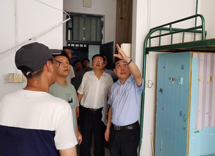 刘友忠在检查中强调,要坚持把疫情防控的重要任务贯穿到新学期开学初后勤保障工作的全过程和各方面,把常态化疫情防控的各项措施落细落小落实。要坚持安全施工、文明施工,规范操作,严格落实工程进度,严把工程质量,确保项目如期完工。要坚持问题导向,加强督查巡查,层层追踪,逐级落实,特别是学生宿舍维修,监理单位、工地代表和宿舍管理员要深入维修一线,认真查找问题,督促整改到位,确保高质量地如期完成各项维修改造任务。要增强服务意识,扎实做好餐饮、卫生保洁、消毒通风、物业、洗浴、校园交通等服务保障工作,给阔别母校半年有余、即将返校的莘莘学子带来新的气象、新的面貌和新的希望。(撰稿、摄影:刘广志   审核:王先民 陈秀)