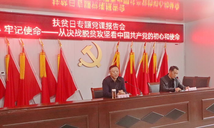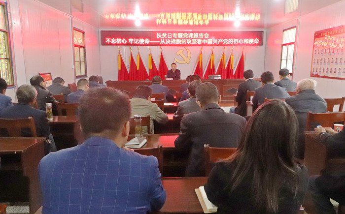 10月15日,在第7个国家扶贫日、第28个“国际消除贫困日”来临之际,校长闵永新赴永利官网定点帮扶单位太湖县天华镇西冲村,为定点帮扶村党员群众送去题为《不忘初心 牢记使命——从决战脱贫攻坚看中国共产党的初心和使命》的专题党课报告。