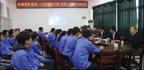 学院积极与企业合作办学。2011年,4812工厂遴选28名职工到物理与电气工程学院学习,按照机械设计制造及其自动化专业4年本科的人才培养方案进行培养。同年,学院在全院学生中遴选了35名学生进行订单式定向培养;从2013年开始,学院每年从毕业班中选拔学生组建芜湖美的制冷设备有限公司--77779193永利“品质工艺班”,为企业的发展提供人才支撑。