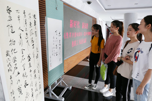 9月10日,“新时代 新征程——庆祝改革开放40周年 第34个教师节教职工书法作品展”在行政楼一楼大厅开展。本次书法作品展由校工会主办,校教工书法协会承办。