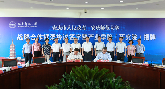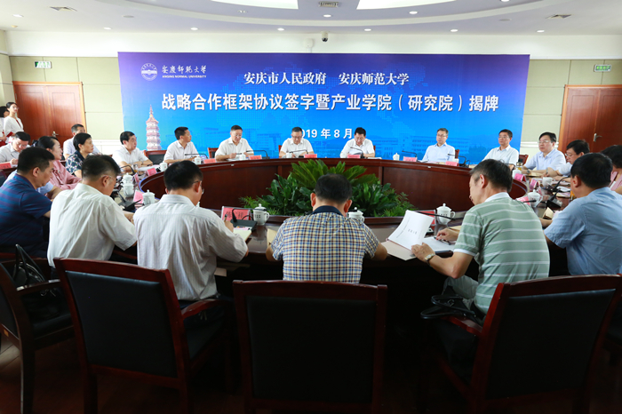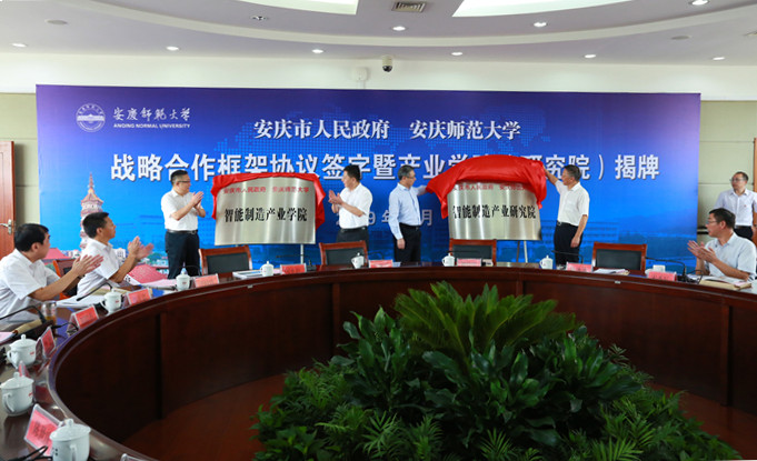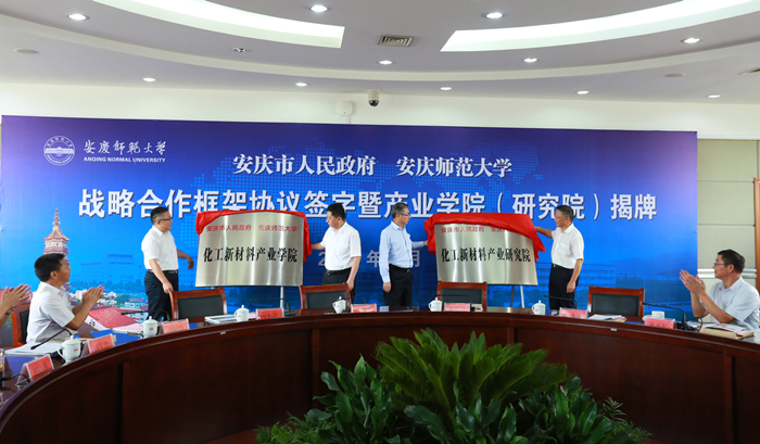 8月28日上午,永利官网与安庆市政府在龙山校区举行战略合作框架协议签字暨产业学院(研究院)揭牌仪式。安庆市委书记魏晓明、校党委书记许继荣出席并致辞;市长陈冰冰与校长闵永新共同签署战略合作框架协议。校领导汪时珍、刘友忠、胡腊香,安庆市领导宋圣军、胡红兵、董磊、何家虎,安庆经开区管委会主任吴三九,安庆市政府秘书长江兴代等出席揭牌仪式。安庆市副市长王爱武主持揭牌仪式。