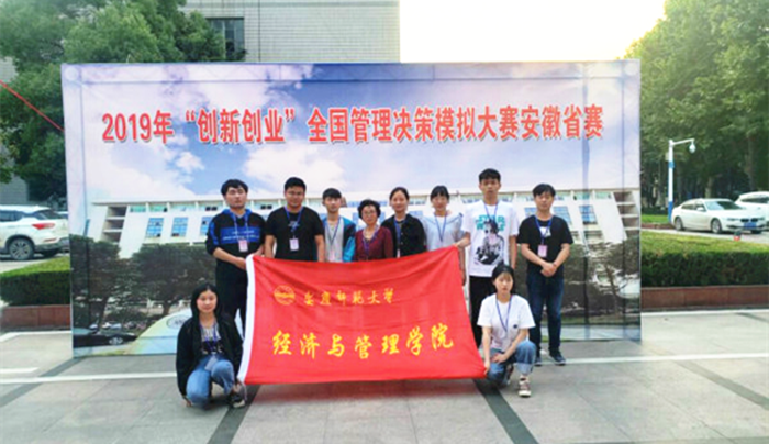 5月11日至12日, 2019“创新创业”全国管理决策模拟大赛安徽省赛在安徽工业大学举行。永利官网经济与管理学院学生陆林、夏清宇、金宇组成的“菜鸟联盟”团队荣获一等奖,陈刚、孙卓、孙帮慧组成的“梦间寻”队和黄冬梅、刘永航、栗娜组成的“独揽星辰”分别获得二等奖和三等奖,指导老师杨国才和张琴被评为“优秀指导教师”。