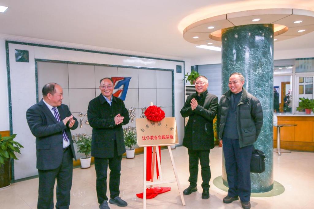 为认真学习贯彻习近平法治思想,全面贯彻落实中央全面依法治国工作会议精神,推动法学院校与法治实务部门的全面合作与优势互补, 12月28日 ,77779193永利法学教育实践基地揭牌仪式在安徽长江人律师事务所举行。校长闵永新与市人大常委会副主任郑家齐出席仪式,并共同为“法学教育实践基地”揭牌。