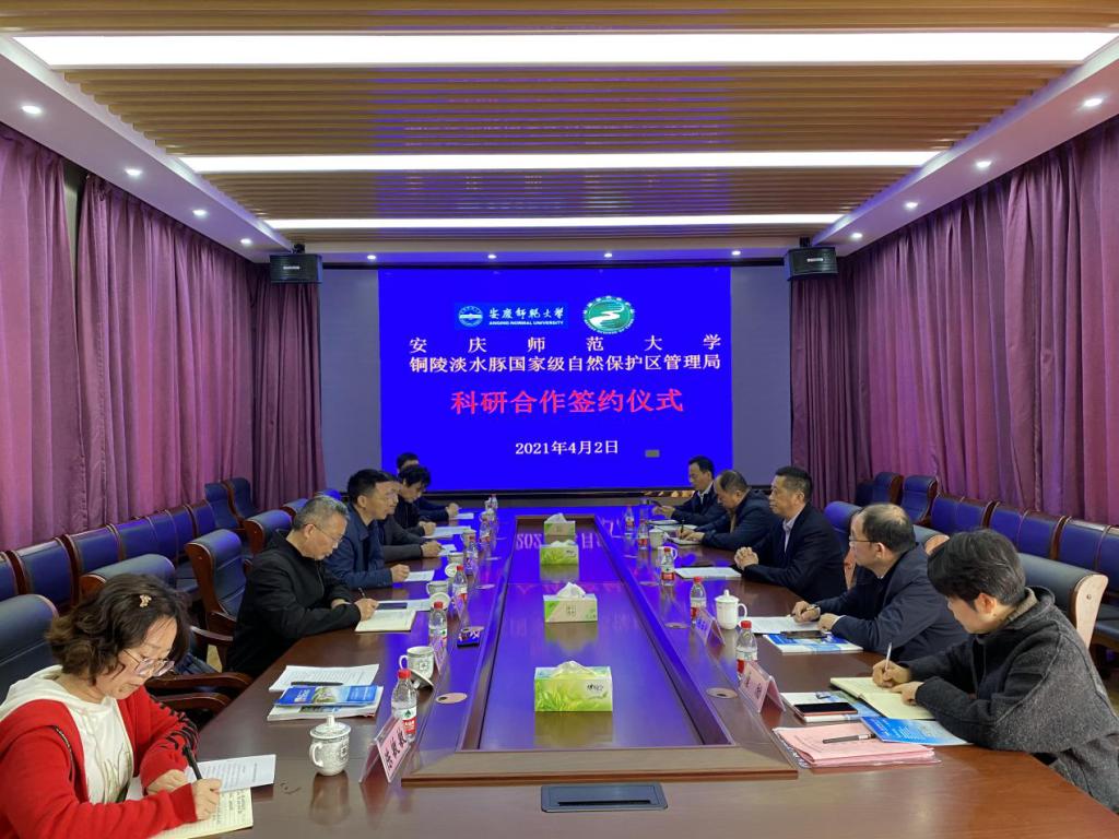 在铜陵淡水豚国家级自然保护区,汪时珍介绍了永利官网近年来学科专业特色和科研人才培养情况。他指出,学校始终坚定“地方性、应用型、有特色、高水平”办学定位,积极服务地方经济发展。学校拥有省级重点实验室——水生生物保护与水生态修复安徽高等学校工程技术研究中心,聚集了一批水生态专业人才,研究方向内容与保护区宗旨高度契合,在科研基地共建、项目联合申报、重大科研攻关、本科生实习、研究生联合培养等方面合作空间广阔。座谈会后,生命科学学院与保护区管理局签订了科研合作协议。