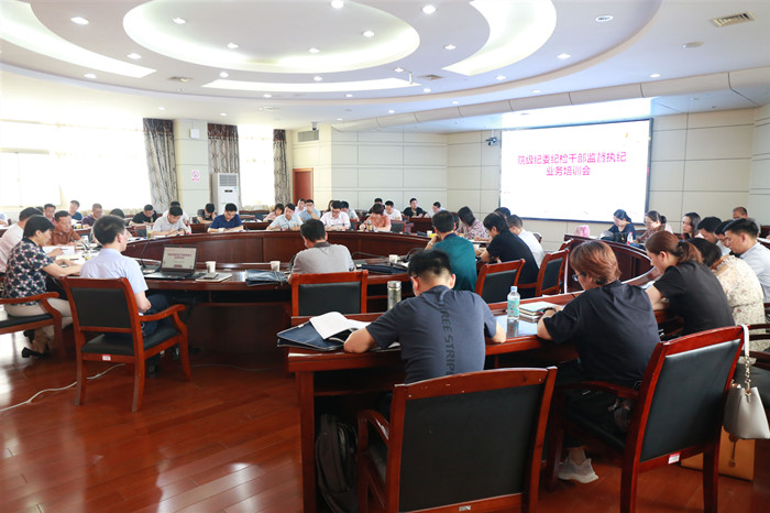 党课报告后,校纪委开展了院级纪委纪检干部监督执纪业务培训,就院级纪委工作原则、主要职责、履责方式、纪检监察工作相关法规制度、纪检监察信访举报及问题线索处置等进行了介绍。