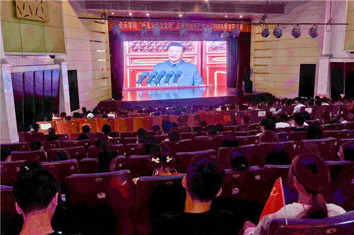 7月1日上午7:00,永利官网音乐厅内国歌嘹亮,党旗挥舞。广大师生怀着激动的心情等待收听收看庆祝中国共产党成立100周年大会直播。上午8点,庆祝中国共产党成立100周年大会在北京天安门广场隆重举行。中共中央总书记、国家主席、中央军委主席习近平发表重要讲话。