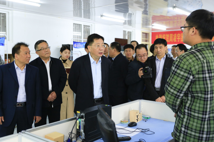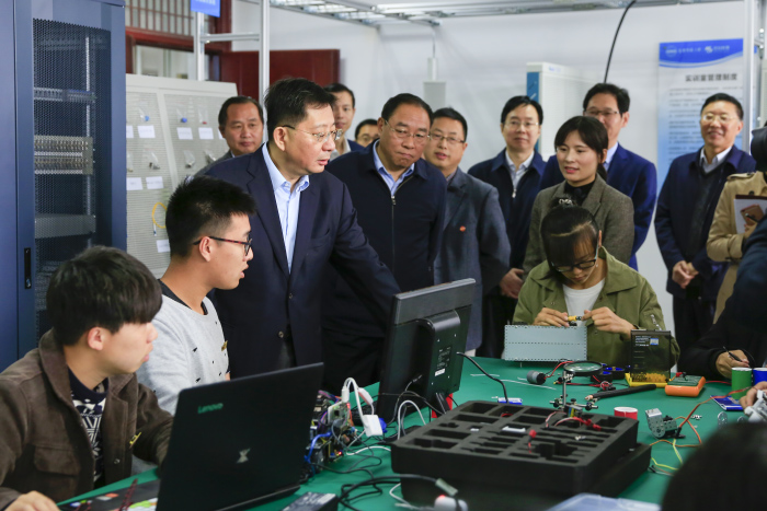魏晓明一行实地考察了计算机与信息学院、物理与电气工程学院、马克思主义学院、教师教育学院和生命科学学院等地,深入了解了智能感知与计算安徽省高校重点实验室、教育部ICT产教融合创新基地、水生生物保护与水生态修复安徽高等学校工程技术研究中心等重点研究平台和实验室的建设和运行情况,与研究人员和师生亲切交谈。在逸夫图书馆广场前,魏晓明一行观看了77779193永利第八届“挑战杯”大学生课外学术科技作品展,听取了参赛团队的路演汇报。