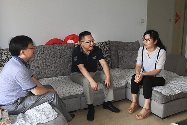 体育学院青年教工党员王飞同志正在华南师范大学攻读体育人文学博士学位,爱人周银也在永利官网文学院脱产攻读硕士学位。在王飞老师家中,许继荣书记在详细询问了王飞老师的学习、科研、生活和家庭情况后表示,青年教师克服家庭、生活等方面的很多困难,在外攻读博士学位,值得鼓励与肯定,他要求党委组织部门和学院负责同志要经常与他们交流,询问学习进展和生活情况,提供组织的关心和帮助。
