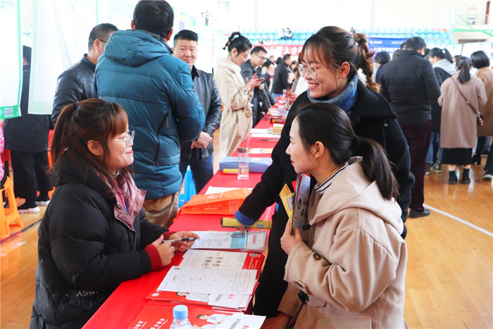双选会现场气氛热烈,人头攒动。毕业生们手持简历,穿梭于人流中,积极与招聘人员交流,了解用人单位的招聘要求、工资待遇等情况。用人单位也热情地向学生进行解答。