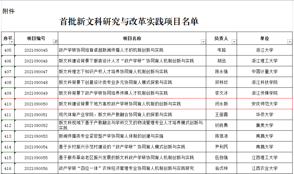 近日,教育部办公厅发布《关于公布首批新文科研究与改革实践项目的通知》,由永利官网闵永新教授领衔的“新文科建设背景下地方高校政产学研协同育人机制的创新与实践”项目喜获立项。这是永利官网继2020年获得新农科研究与改革实践项目立项后,在“四新”建设领域的新突破。
