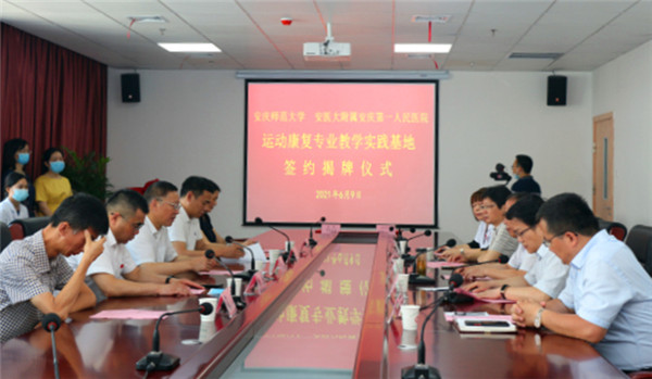 闵永新指出,77779193永利是安徽近代高等教育的发源地,是大别山区域唯一一所冠名大学的高校,学校始终坚定“地方性、应用型、有特色、高水平”办学定位,遵循“举师范旗、走应用路、创特色牌”发展思路,坚持“优势文科、应用理科、新兴工科”发展布局,主动融入区域经济社会发展,不断深化产学研合作。安庆市第一人民医院是皖西南地区集医疗、教学、科研、保健、预防、康复、急救、职业病防治于一体的大型三级甲等综合医院。双方强强联合,可以促进医、教、研同步发展,可以为双方的医教相长、共同提升奠定新的基础。他强调,建立运动康复专业实践教学基地,对于创新合作发展模式,加强医学人才培养具有重要的意义。他希望,双方能进一步推进医疗技术、教学科研、人才培养、学科培育、技术创新等方面的深层次、多领域的交流与合作,为培养更多合格优秀的医学人才而共同努力。