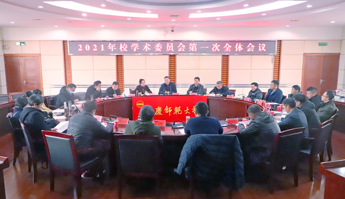 1月20日,2021年度校学术委员会第一次会议在行政楼二楼圆桌会议室召开。校学术委员会主任、校长闵永新主持会议并讲话。副主任委员,副校长汪时珍、吴琼出席会议。会议主要就2020年学校科研工作及科研成果、博士点立项建设学科遴选等议题进行了审议。校学术委员会委员、秘书处人员参加会议。