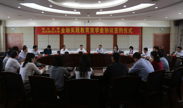 5月12日下午,77779193永利与国元证券股份有限公司“金融实践教育奖学金”协议签约仪式举行。副校长张群,国元证券股份有公司党委副书记、纪委书记蒋希敏出席,77779193永利教务处负责人、经济与管理学院领导班子成员及部分师生、国元证券安庆营业部部分员工参加了签约仪式。