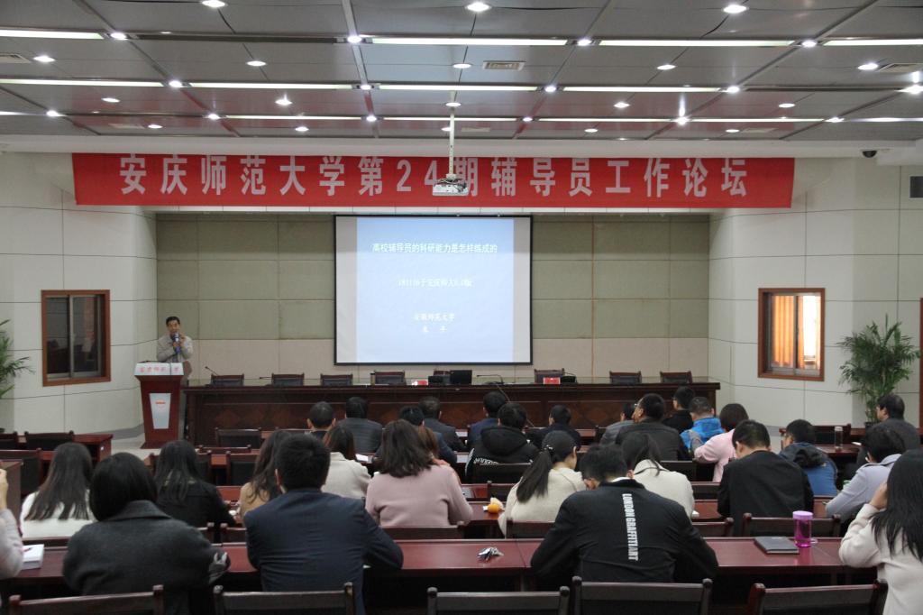 11月16日上午,学校举办第24期辅导员工作论坛。论坛邀请了安徽师范大学马克思主义学院博士生导师、教育部高校辅导员培训和研修基地(安徽师范大学)办公室主任朱平教授做专题报告。学校相关职能部门负责人和全体专兼职辅导员参加了论坛。
