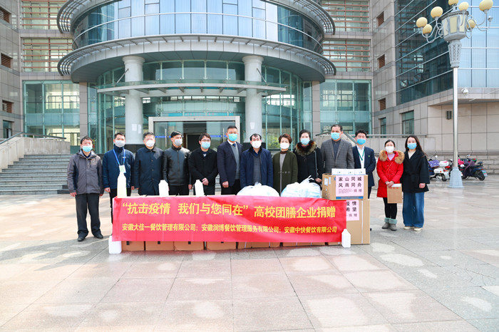 疫情无情,人间有爱。3月10日上午,安徽大佳一餐饮管理有限公司、安徽润博餐饮管理服务有限公司、安徽中快餐饮有限公司等三家餐饮企业代表从合肥专程赶到学校,向永利官网捐赠了新冠肺炎疫情防控物资。副校长、学校新冠肺炎疫情防控工作指挥部指挥长刘友忠代表学校接受了防控物资。疫情防控工作指挥部办公室有关人员参加了捐赠活动。