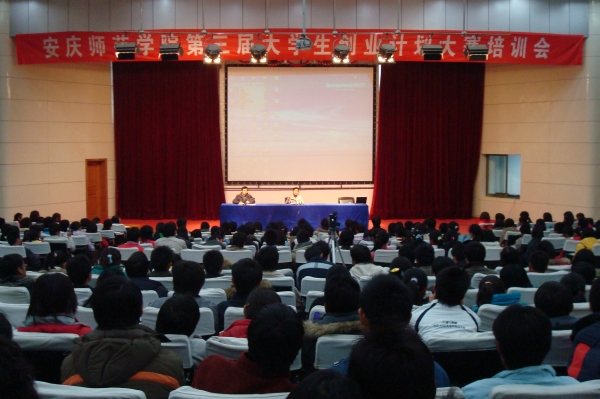 由共青团中央、中国科协、教育部、全国学联共同主办第六届“挑战杯”全国大学生创业计划大赛将于今年9月份在江苏南京举行,为在永利官网大学生中广泛宣传“挑战杯”赛事,帮助学生在挑战杯”全国大学生创业计划大赛中取得新的突破,引导学生崇尚科学、追求真知,走科技创业、实践成才之路,校竞赛组委会邀请了历届“挑战杯”比赛指导教师计算机与信息学院的江晋剑老师和全省创业计划大赛银奖获得者04级市场营销专业的张婷同学,于2月29和3月1日晚分别在新老校区为800多名同学作首场培训。校团委负责同志和各院系团总支负责人也参加了培训会。