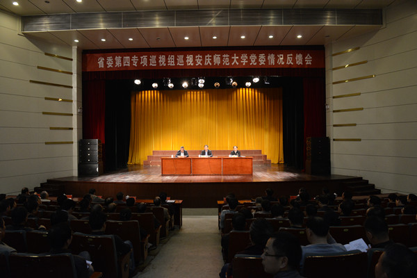 顾党胜代表巡视组提出意见建议:一要牢固树立“四个意识”,认真落实整改任务。巡视发现的问题,根本原因在于党的领导弱化、党的建设缺失、全面从严治党不力。安庆师大党委要认真履行整改主体责任,高度重视巡视反馈意见整改工作。对巡视反馈的问题,要按照省委和省委巡视工作领导小组的要求,坚持立即整改、全面整改、彻底整改。要按照政治巡视的要求,切实增强党的观念,将整改的过程作为加强党的领导,加强党的建设,落实全面从严治党要求的过程,作为以实际行动贯彻落实党的十八届六中全会精神的过程。领导班子要召开专题民主生活会进行深刻剖析、对照检查。党委书记作为落实整改任务的第一责任人,要切实负起责任,领好班子,带好队伍,认真研究反馈意见,制定整改措施,明确整改要求,压实整改责任,落实整改任务,确保整改实效。二要全面落实党委领导下的校长负责制。要认真组织学习贯彻中央和省委关于坚持和完善党委领导下的校长负责制的实施意见,结合学校的实际制定具体的实施办法,切实加强党对学校工作的领导。要认真贯彻落实民主集中制,坚持集体领导与个人分工负责相结合,坚持重大事项都要经过集体研究决定,坚持民主管理,坚持党务、校务公开,注意听取和集中专家和教职工的意见,充分调动广大教职工的积极性。三要坚持问题导向,全面加强党的建设。要针对学校党建工作的薄弱环节,从解决突出问题入手,以强基固本为抓手,切实加强党的建设。要认真解决重业务、轻党建,一手硬、一手软的问题,解决组织涣散的问题,解决党务干部队伍薄弱的问题,解决发展党员质量不高的问题,解决党员队伍管理不严的问题,切实提高党组织的战斗力和凝聚力。四要勇担主体责任和政治责任,坚定不移推进全面从严治党。党委要切实负起管党治党的主体责任,敢于担当,敢于问责,坚决克服好人主义倾向,对于巡视中移交和发现的问题线索,要盯住不放,认真核查,严肃处理,做到件件有着落,事事有结果,切实解决纪律松弛的问题。要支持纪委和监督部门履行职责,用全面从严治党的实际行动树立政治权威。纪委要协助党委加强党风廉政建设,认真落实“三转”的要求,聚焦主业,履行主责,加强监督,挺纪在前,对于违反纪律的行为严肃查处,动辄则究,尽快实现由宽松软向严紧硬的转变。五要坚持深化改革,不断推进学校管理的规范化和科学化。要对学校管理上存在的问题进行全面梳理,举一反三,分类解决。要坚持通过深化改革、建章立制解决存在的问题。特别是对涉及干部人事管理、基本建设投入、工程和服务招标、大额资金分配和师生利益方面的问题,要坚定不移地推进改革,通过改革真正打破利益的藩篱,坚决堵塞漏洞,杜绝权钱交易、利益输送的行为,切实解决侵害群众利益的问题。要认真抓好制度的废、改、立,建立起用制度管人管事管财的机制,建设清廉校风,为学校的发展创造良好的环境。