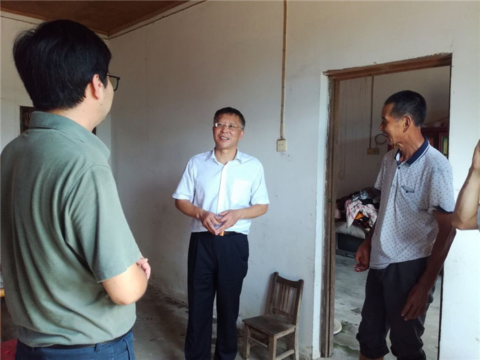 揭牌仪式结束后,闵永新一行前往西冲村开展走访调研活动。闵永新首先察看了石斛种植基地,详细询问了石斛种植规模及长势情况。随后深入贫困户家中走访慰问,为他们送去大米、食用油等生活物资。在村部举行的座谈会上,闵永新强调,今年是太湖县脱贫摘帽的关键之年,希望驻村工作队同志要牢记使命,进一步强化责任担当,充分依托学校资源优势,探索符合西冲村经济增长的发展模式,切实让西冲村老百姓得到实惠,让西冲村集体经济发展壮大,助力太湖县脱贫摘帽。