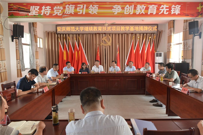 8月21日,校长闵永新赴太湖县天华镇中心学校为继续教育扶贫项目教学基地揭牌,太湖县委常委、宣传部长李加生及太湖县有关方面负责同志参加了揭牌仪式。