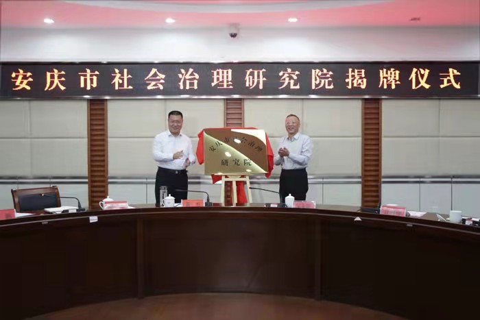 5月11日,永利官网与安庆市在行政楼二楼圆桌会议室举行安庆市社会治理研究院揭牌仪式。校党委副书记、校长闵永新,安庆市委常委、政法委书记、市公安局局长黄杰出席揭牌仪式,永利官网科研处、校市合作办、安全管理处、法学院、经济与管理学院、教师教育学院,安庆市委政法委、市委党校、市公安局、宜秀区政法委负责人参加会议。会议由党委常委、副校长汪时珍主持。