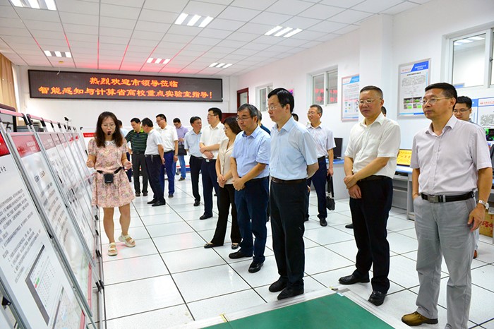 座谈会前,安庆市领导一行参观了化学化工学院(化工新材料产业学院)、电子工程与智能制造学院(智能制造产业学院)和计算机与信息学院(人工智能产业学院)学科平台和重点实验室。